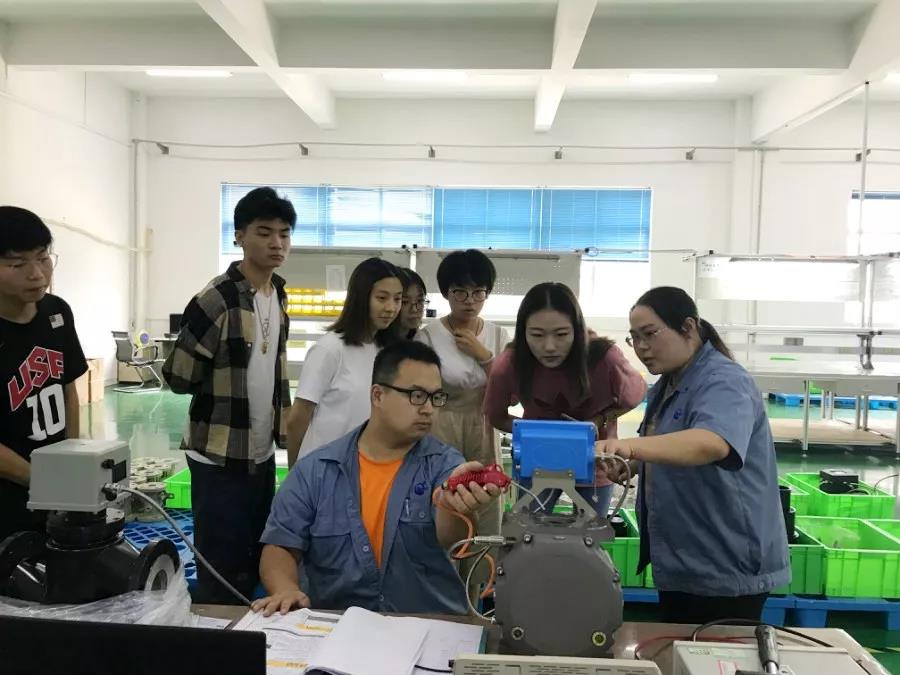 上海理工大学学生在城燃装配车间观摩涡轮流量计产品检测过程